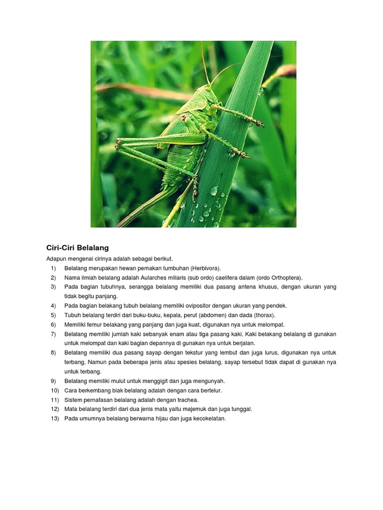 Sebutkan Ciri Ciri Belalang Beserta Fungsinya Brainly Co Id